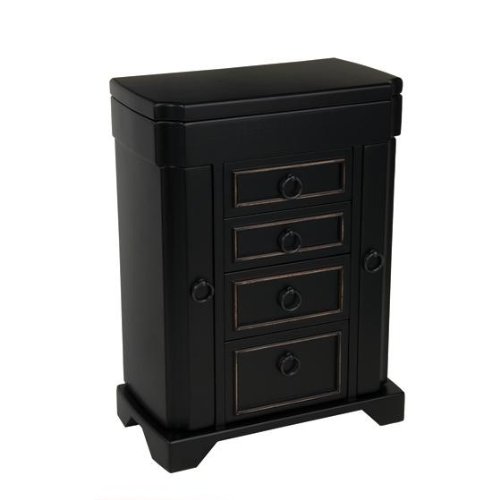 Phoebe Black Distressed Finish Upright Jewelry Box (Black) (13.25"H x 10.125"W x 5.5"D) Features