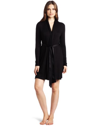 Fleur't Women's Armoire Basic Collar Bathrobe, Black, Medium/Large